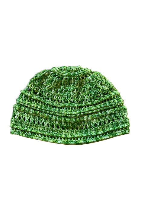 Bonnet unisexe ultra-detaillé, vert et ajouré.